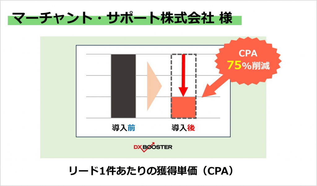 マーチャント・サポート株式会社は、元々リスティング広告運用とランディングページ(LP)制作を外注していましたが、期待した成果が得られませんでした。そこで、広告運用だけでなくLPも含めて社内で運用・改善を進めていける『DX BOOSTER』を導入し、独自のプログラムを用いてインハウス化を実現しました。